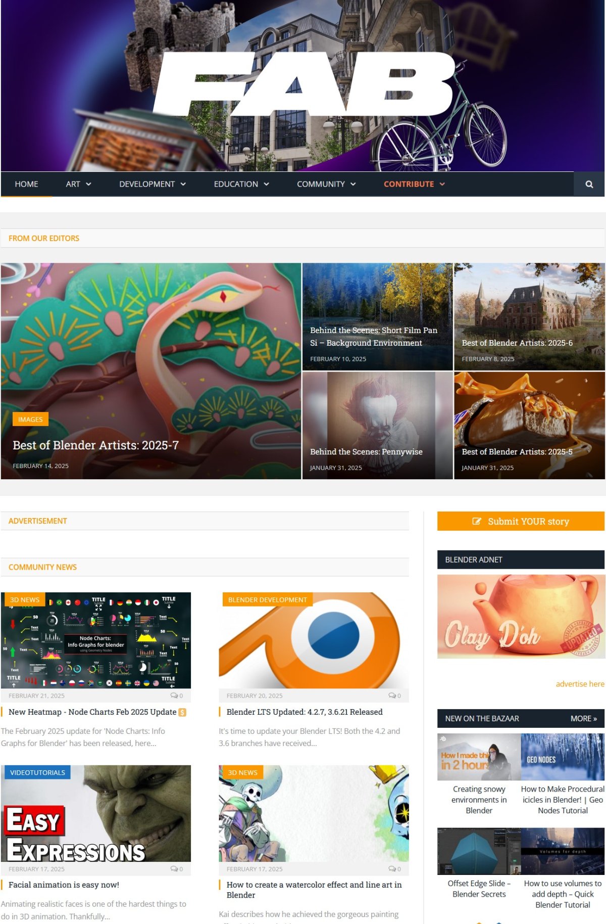 - Le site publie des articles sur les nouvelles versions de Blender, les nouveaux outils et add-ons, des interviews d'artistes Blender, et les faits saillants du travail de la communauté.