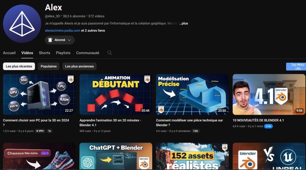 Chaine YouTube tutoriels Blender en français