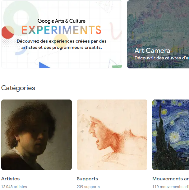 Naviguez et explorez les expériences, les photos, les peintures en très haute définition, les notes sur les œuvres et les artistes ou encore les Musées.