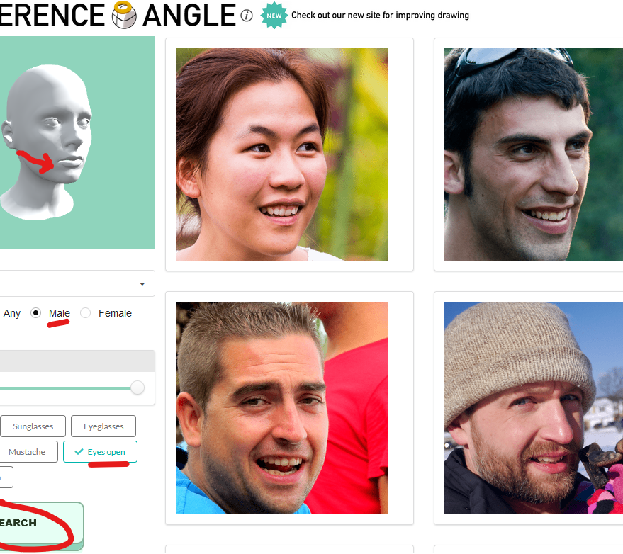 Trouve des photos en fonction de l'angle du visage que vous avez paramétré