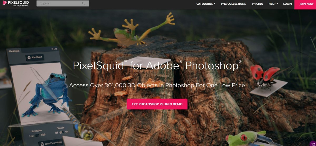 Banque d'objets 3D avec plug_in Photoshop. Fonctionne sur le même principe qu'Adobe Stock