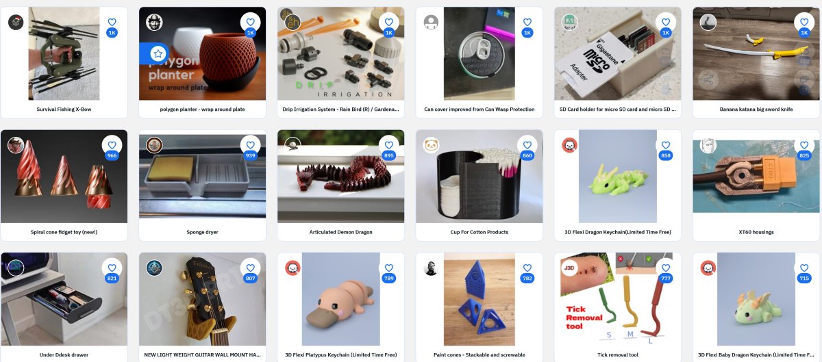 Une plateforme communautaire et une immense bibliothèque en ligne de modèles 3D gratuits et payants. Les utilisateurs peuvent télécharger, partager et imprimer une variété d'objets, allant des gadgets pratiques aux pièces artistiques.