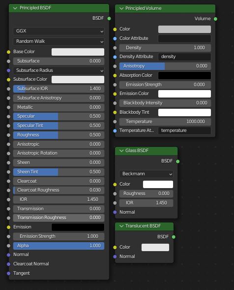 - Volume Shader : Utilisé pour créer des effets volumétriques comme le brouillard ou la fumée.