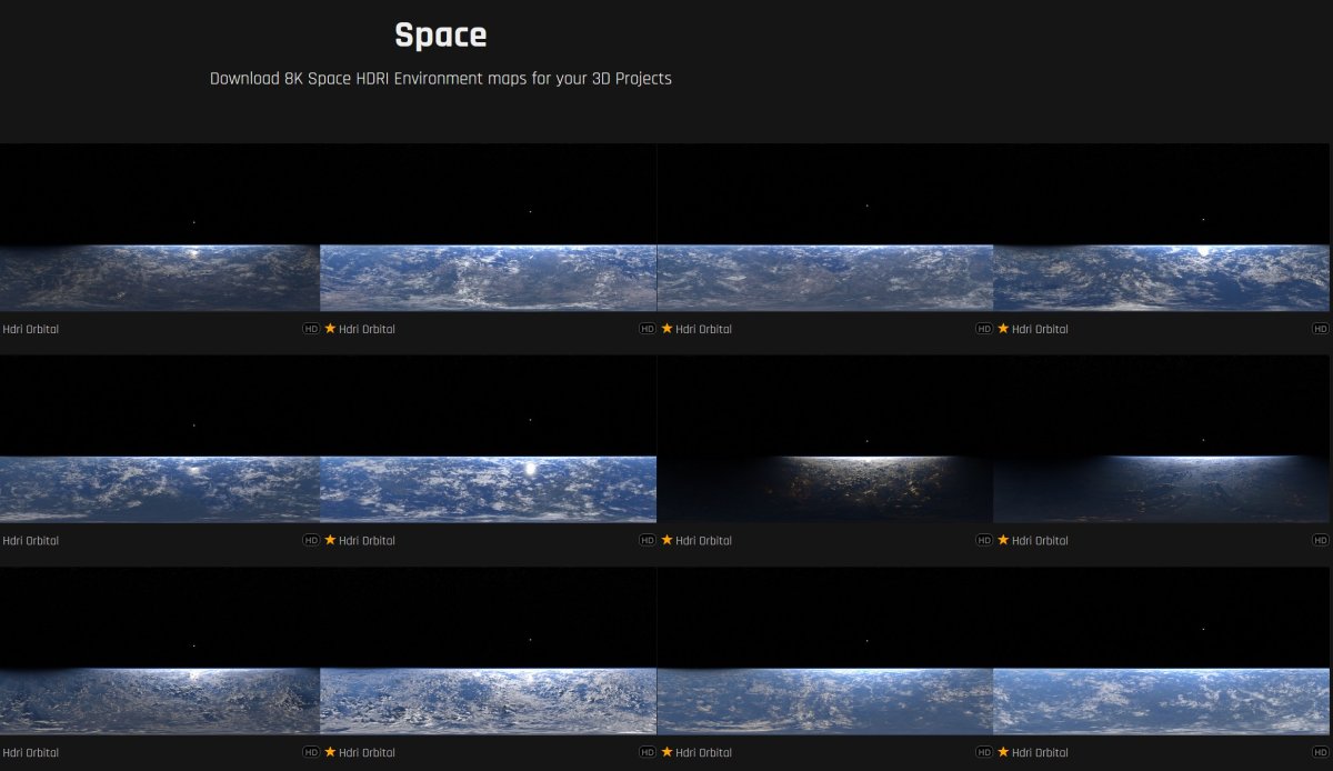 La bibliothèque de ressources en ligne ProductionCrate a publié un ensemble de 100 images HDRI synthétiques montrant la Terre depuis l'espace, dont 10 peuvent être téléchargées gratuitement.