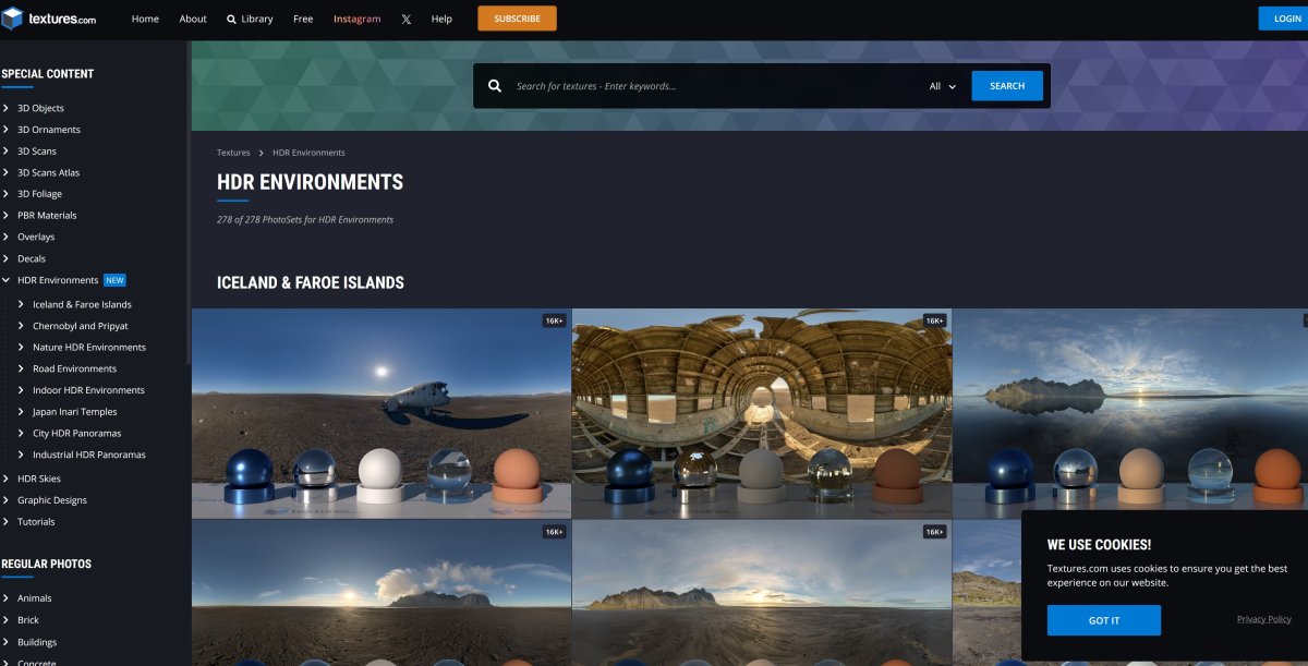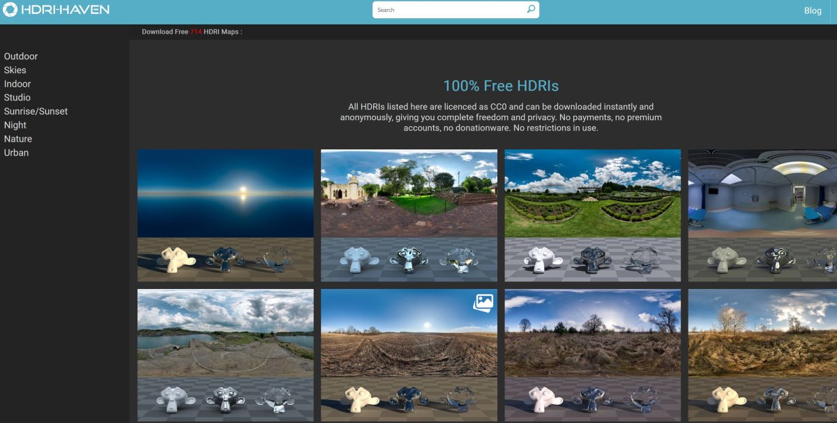 Ressources Hdri Textures Modèles gratuites ; mais le site est à soutenir…