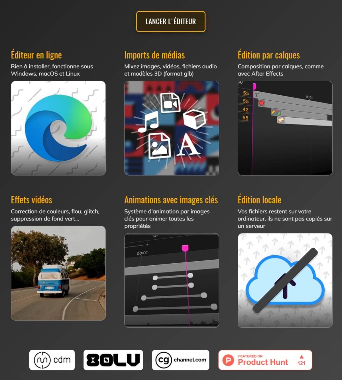 Lancé en mai 2024, il ambitionne de devenir un équivalent web et libre d'After Effects, accessible à tous, quel que soit votre système d'exploitation (Windows, macOS ou Linux). Il s'agit d'un outil de création vidéo utilisable directement en ligne, sans installation nécessaire.
