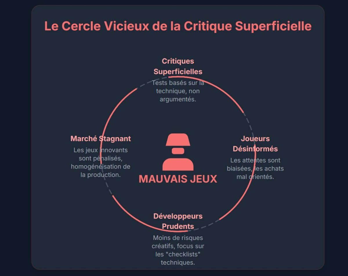 Des critiques mal faites, non argumentées correctement donnent de mauvais avis aux consommateurs qui influencent les ventes puis influencent ensuite la conception des jeux vidéos.