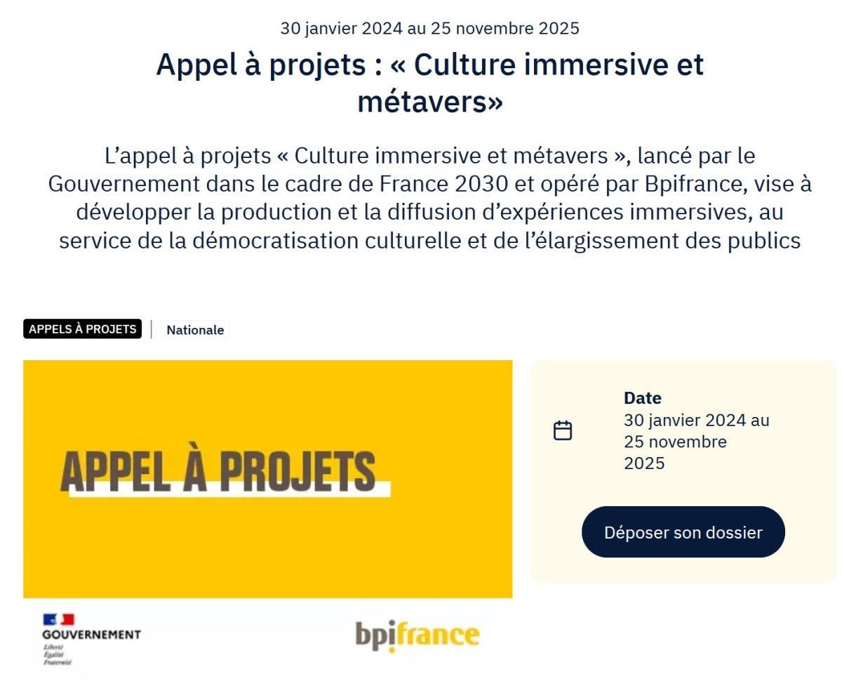 https://www.bpifrance.fr/nos-appels-a-projets-concours/appel-a-projets-culture-immersive-et-metavers