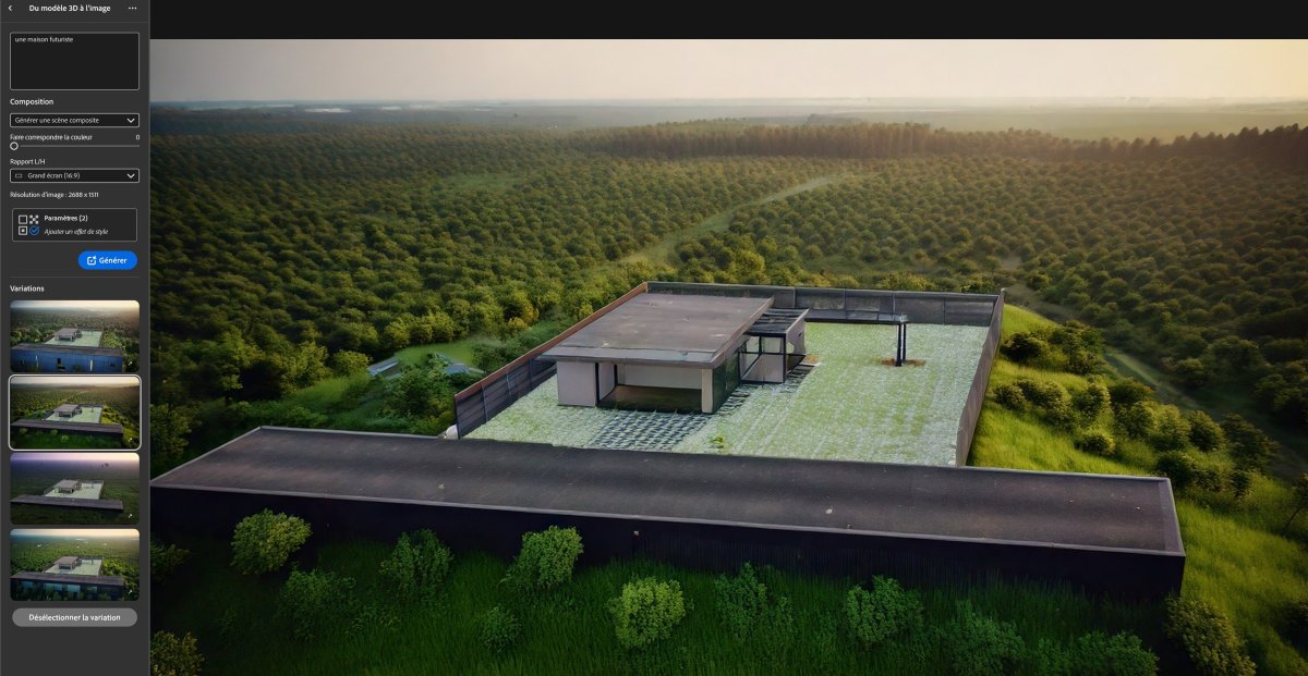 - Fonctionnalité "Scene to Image" : génération d'images à partir d'une invite textuelle grâce à Firefly.