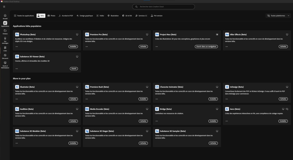 Allez dans votre Adobe Creative cloud en section Beta et retrouvez ces outils pour y accéder et « jouer » avec, avant de créer et laisser libre court à votre imagination.