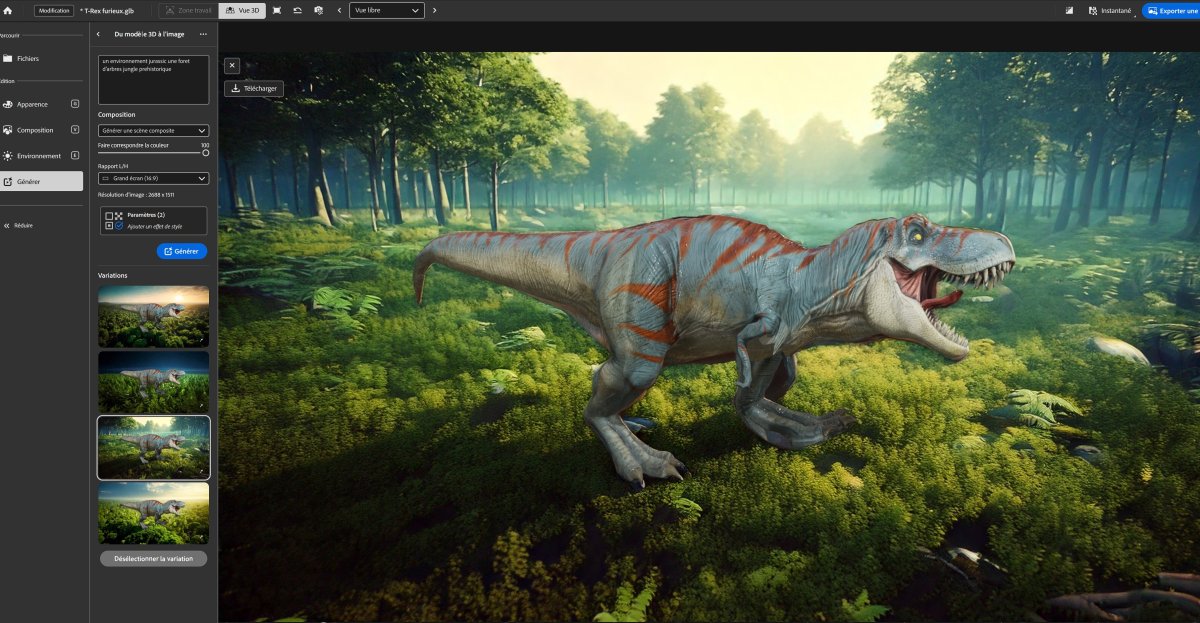 On pourra ensuite l’exporter comme on le souhaite, on peut utiliser les matériaux Substance et/ou faire appel à l’IA Firefly.