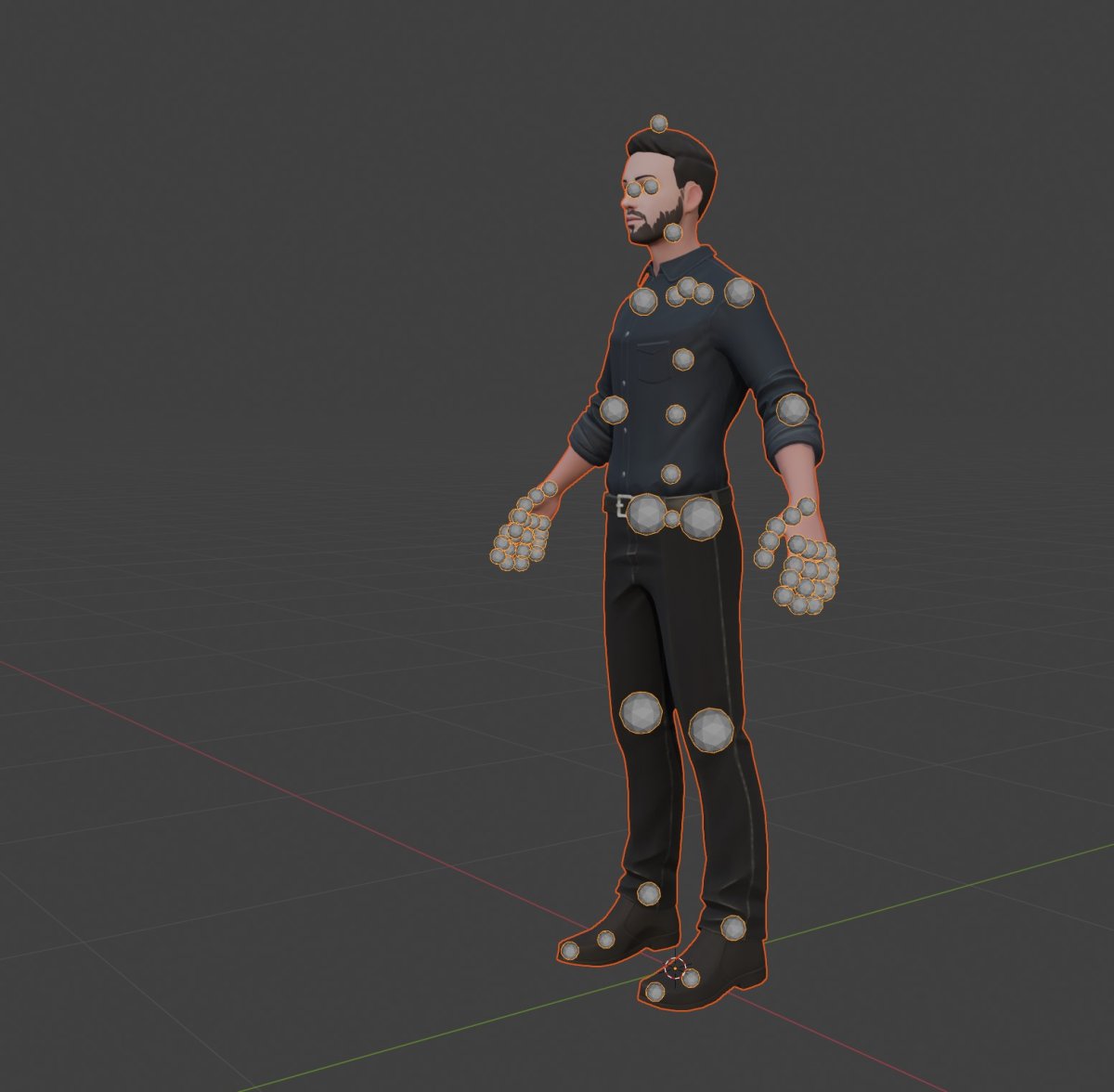 - Ajustez également les sphères grises intégrées à l’avatar pour des poses plus précises. Ces sphères agissent comme des contrôleurs pour articuler le mannequin.