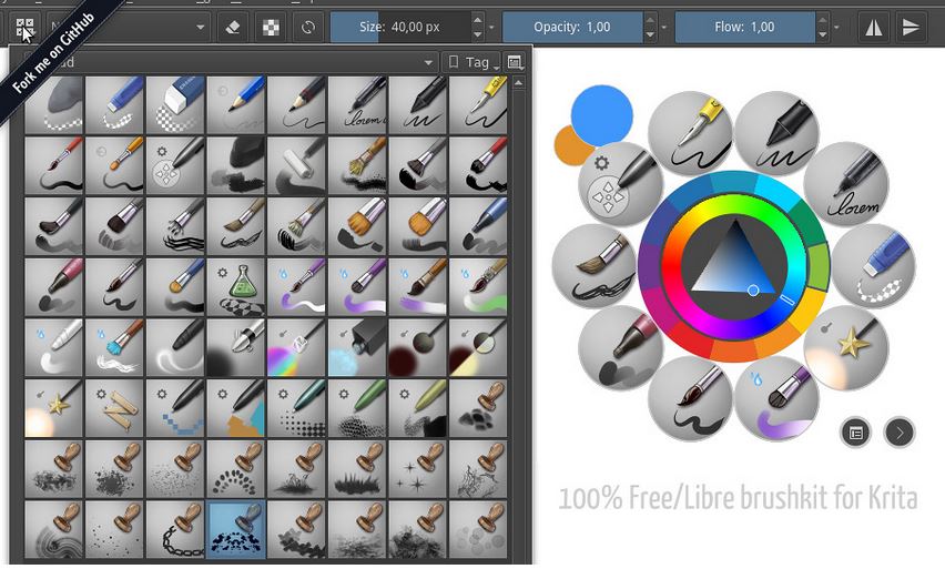Brosses de référence pour Krita. Inclus dans le logiciel depuis la version 4.0