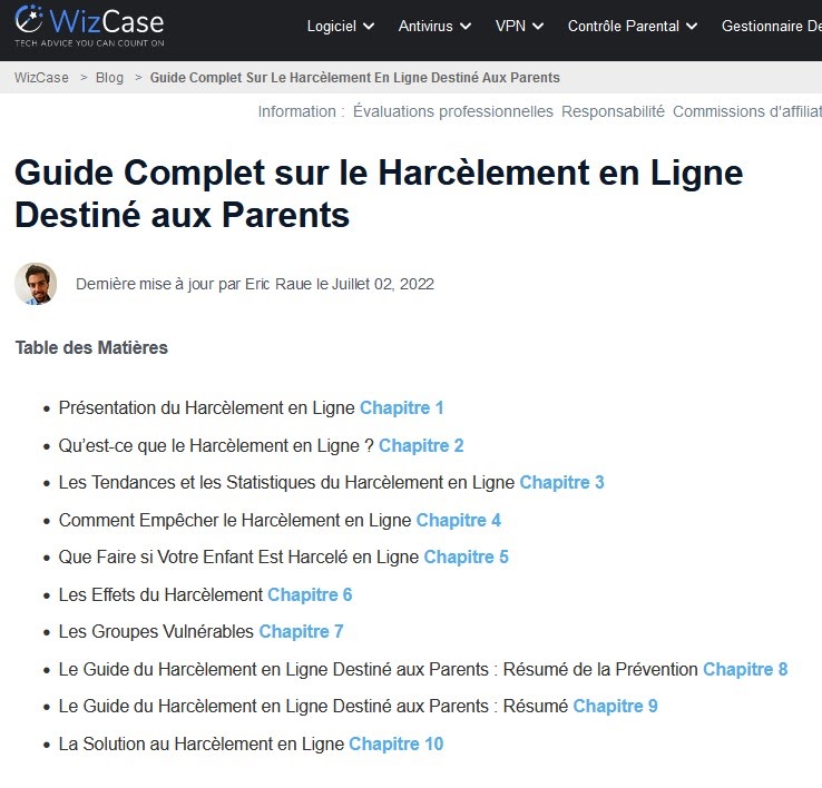 Merci à Mia W. qui m'a gentiment contacté par mail suite à la CréaNews pour me fournir ce lien utile contre le cyberharcèlement en ligne. Merci à elle et je rajoute cette ressource. https://fr.wizcase.com/blog/guide-complet-sur-le-harcelement-en-ligne-destine-aux-parents/