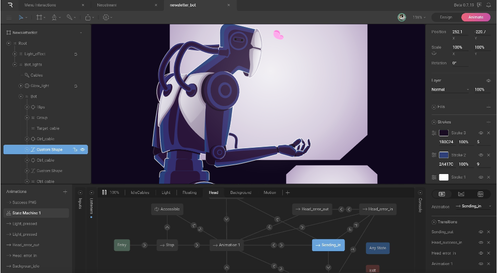 Utilisez les outils de conception et d'animation familiers de Rive avec notre State Machine révolutionnaire pour créer du contenu interactif pour vos produits, applications, sites et jeux.